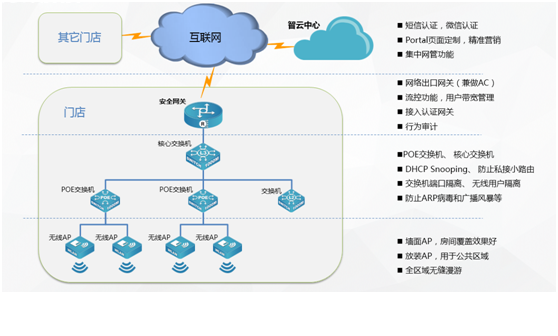 面对移动互联网大潮对传统行业的冲击,运用云计算、移动社交、大数据分析等技术,为酒店、餐饮、休闲娱乐、零售商超等商业市场客户构建基础网络平台,加速商业市场客户业务创新和转型已经刻不容缓,银河集团官网智云商业解决方案志在为商业客户给予最强的用户体验,给予最具商业价值的云网络,给予基于portal认证,短信、微信营销功能。